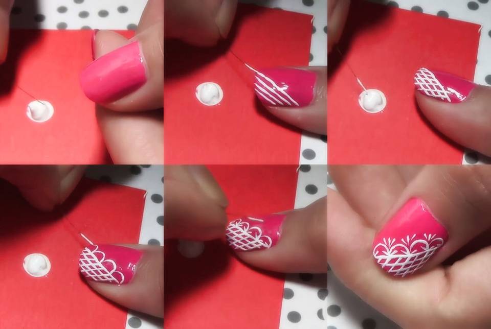 При помощи иглы на ногтях создаются сложные замысловатые узоры, которые невозможно нарисовать кисточкой, какой бы тонкой она ни была. Самыми популярными рисунками, выполненными иголкой, являются кружевная вязь, геометрические фигуры, природные узоры, различные линии, снежинки, паутина, иероглифы.