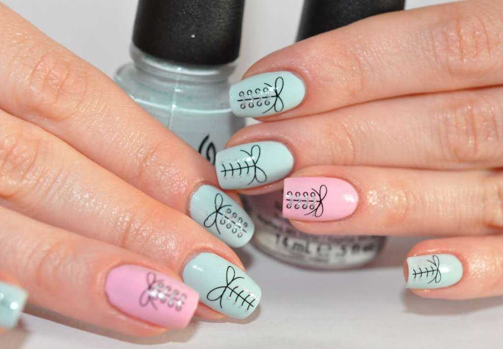 С помощью иголки можно выполнить не только простые рисунки на ногтях, но и замысловатые узоры. Зигзаг отдаленно напоминает шнуровку, для выполнения зигзага понадобится только два лака. Первым цветом покрываем половину ногтя. Желательно, чтобы он был контрастным по отношению к другому тону. Второй лак будем использовать противоположного цвета. Им покрываем вторую половину ногтя. Возьмите иголку и от прикорневой части начинайте рисовать зигзаг, как бы соединяя две половинки, ровными линиями до края ногтя.