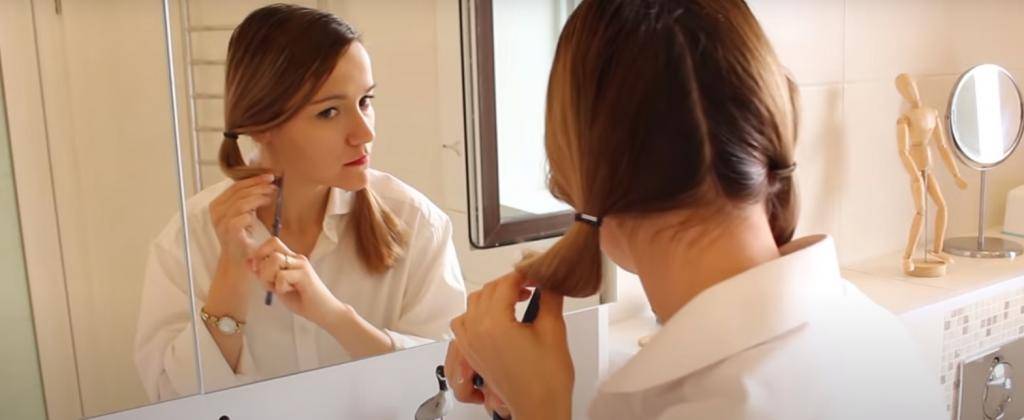 Техника укорачивания кончиков в низком хвосте подходит девушкам с негустыми и прямыми локонами.