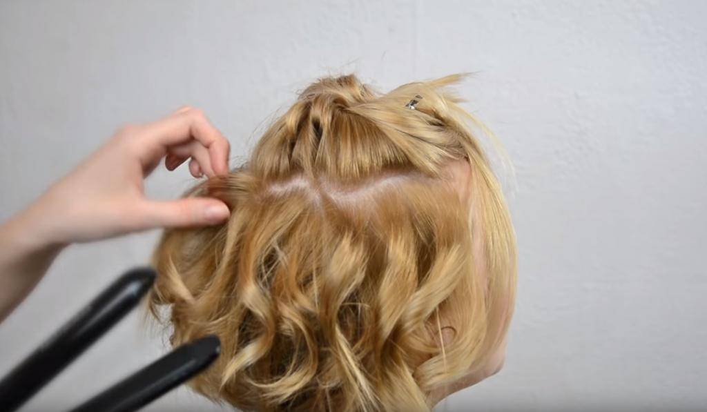 Вначале необходимо вымыть и высушить волосы. Начните делать укладку с затылка