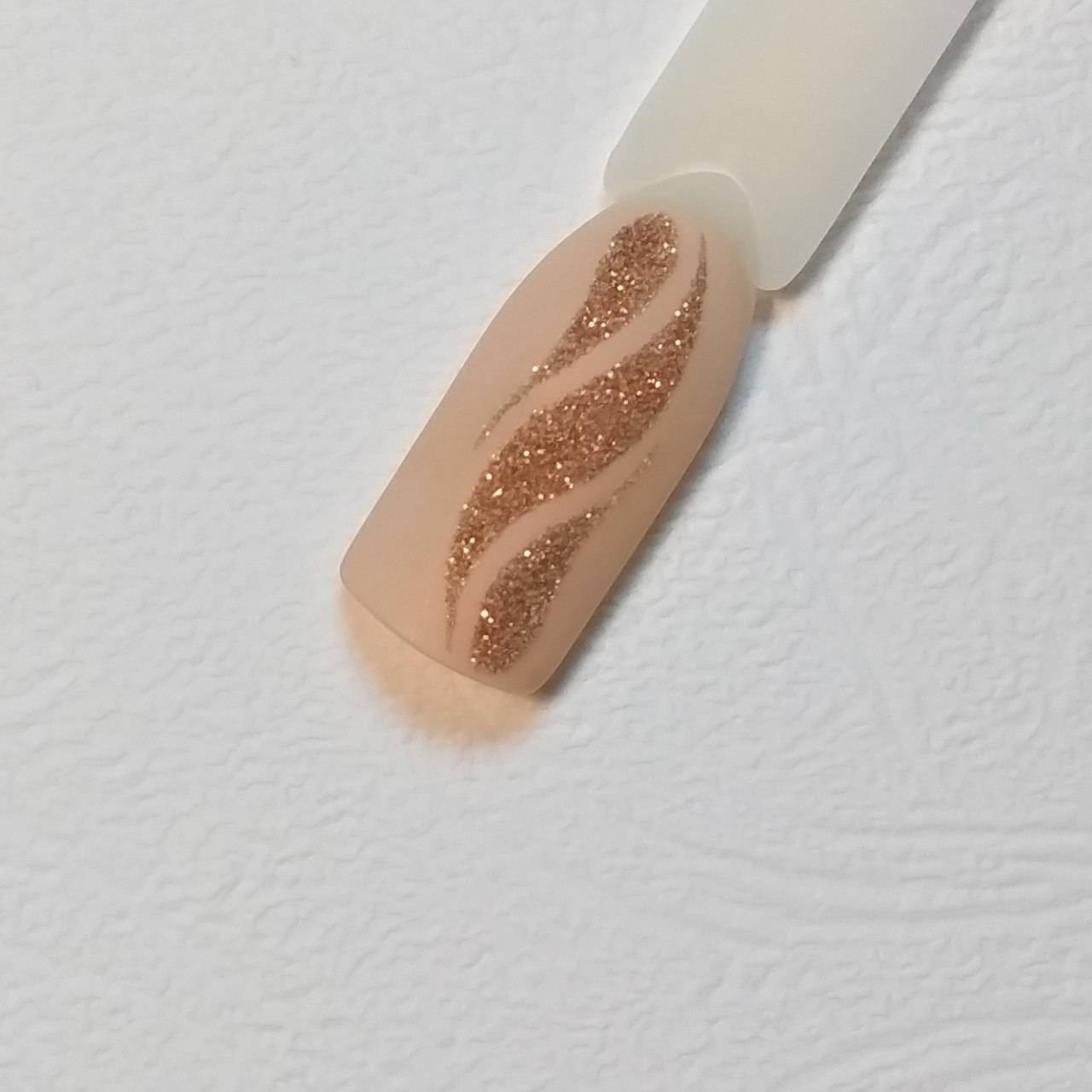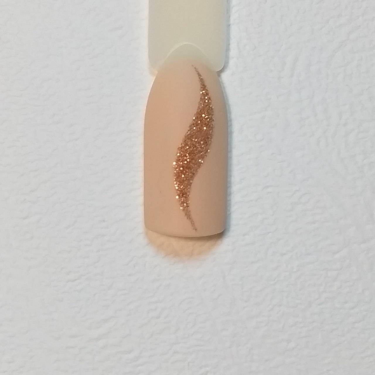 Шаг 1 – Очень красиво смотрится бархатный мерцающий песок на матовом гель-лаке. За основу возьмем модный бежевый оттенок и сделаем нюдовый маникюр.