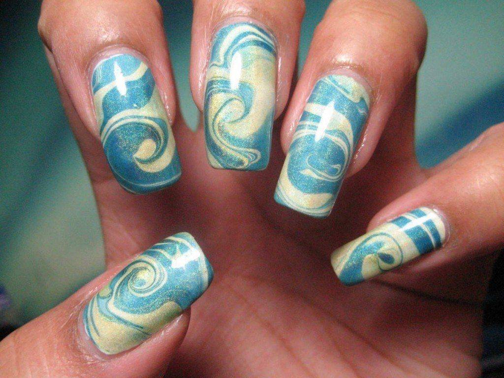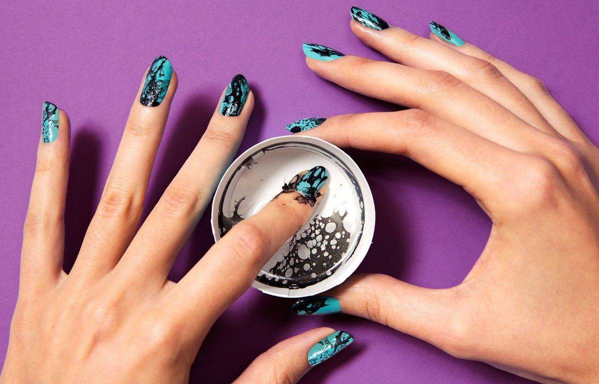 Лак, который будет на коже легко можно убрать ватной палочкой. Именно для этого необходимо наносить крем для рук. В результате на ноготках получится оригинальный дизайн в виде разводов.