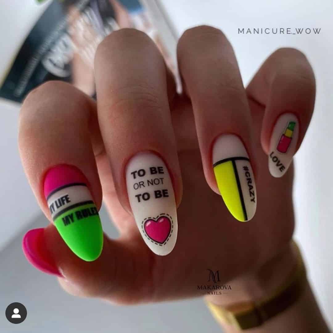 Очень красиво выглядит матовый ноготь, на котором глянцевым топом нанесен орнамент. Используйте нейтральный цвет, а рисунок создайте более ярким, контрастным лаком.