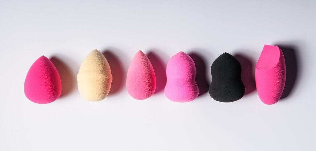 1 — треугольный спонж, 2 — грушевидный бьюти-блендер, 3 — бьюти-блендер со скошенными краями, 4 — мини-блендер для труднодоступных мест, 5 — каплевидный классический спонж, 6 — скульптурирующий бьюти-блендер