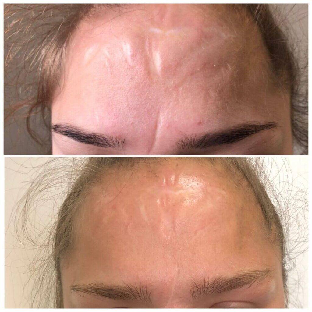 Результат удаления в Coolaser Clinic старых 10ти летних шрамов после 4х сеансов лазерной шлифовки в комплексе с микронидлингом. Лечение продолжается.