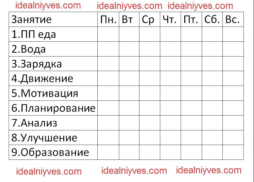 Приблизительное меню на день для желающих убрать живот и бока дома: