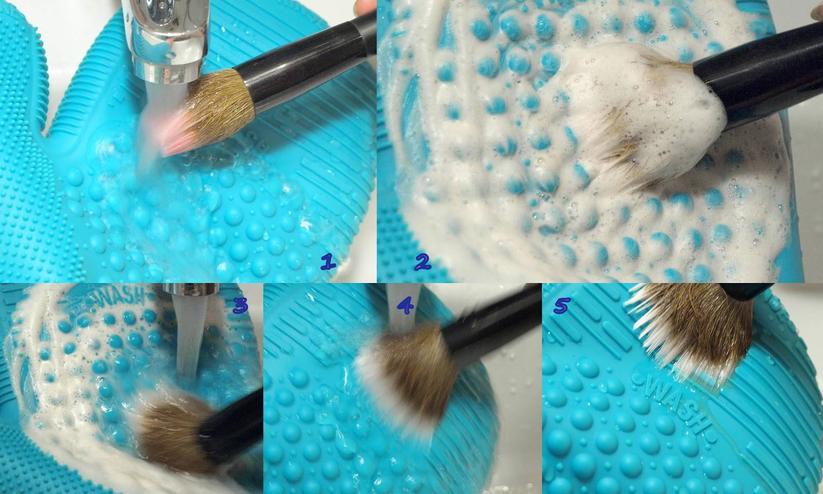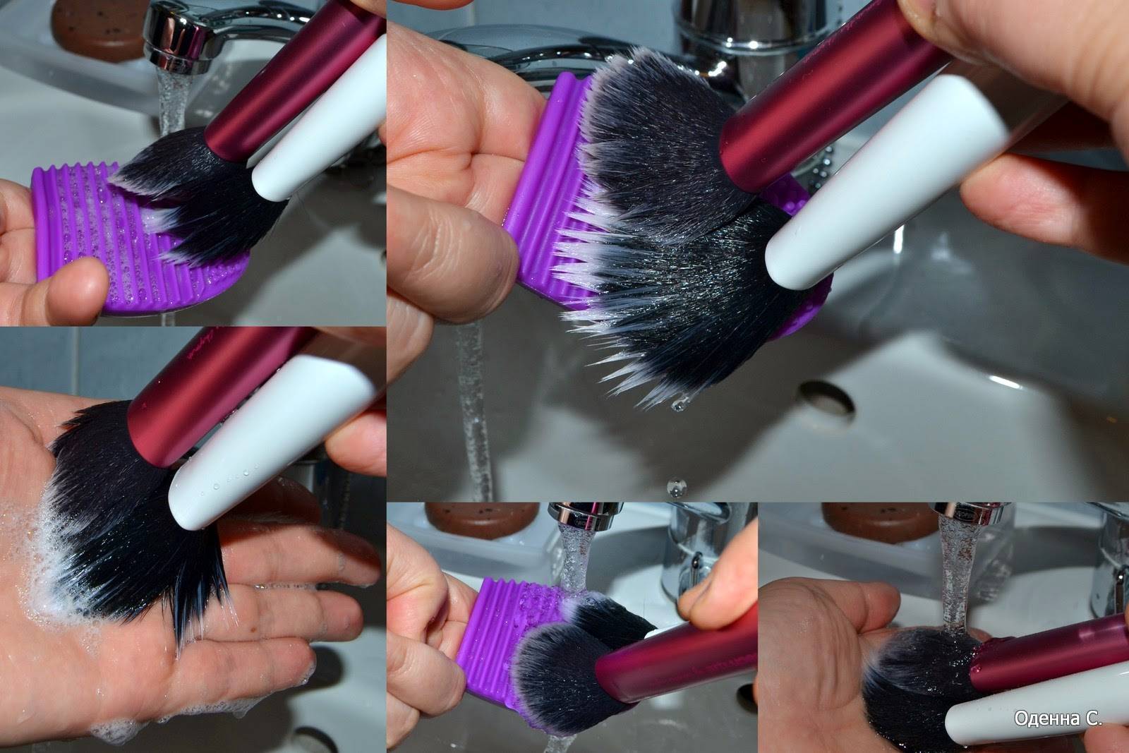 Мыть кисти для губ и тональника нужно часто, а именно каждый день. Остальные же кисти моются раз в неделю. Для очистки используются специальные профессиональные средства, после которых промывать не надо. Если денег на покупку таковых нет, можно протереть ворс 0,5% раствором лизофина, а после промыть кисть водой 20-30 минут.