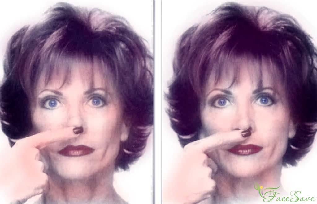 Второй вариант — работа без пальца, усилие делается подбородком. Женщины добиваются отличных результатов, таких как уменьшить широкий нос, добиться изящности, визуального похудения в этих участках.