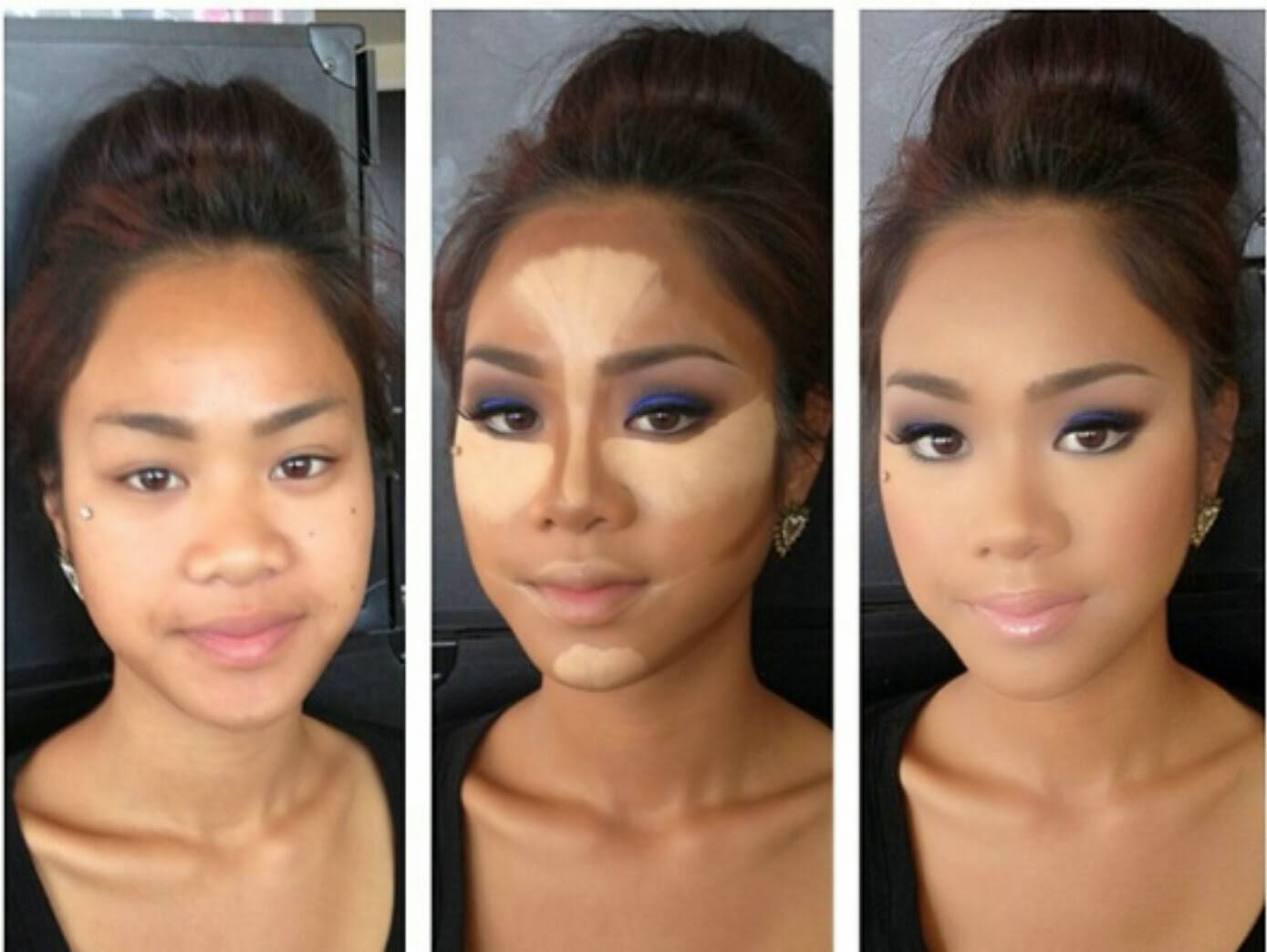 Процедуры по визуальному уменьшению и исправлению с помощью двух оттенков рекомендуется использовать только в вечернее время . Днем преимущество в макияже отдается использованию светлых оттенков косметики. Допускается также макияж, если контуры будут выглядеть легким, и мало заметными, переходы же делаются максимально плавными.