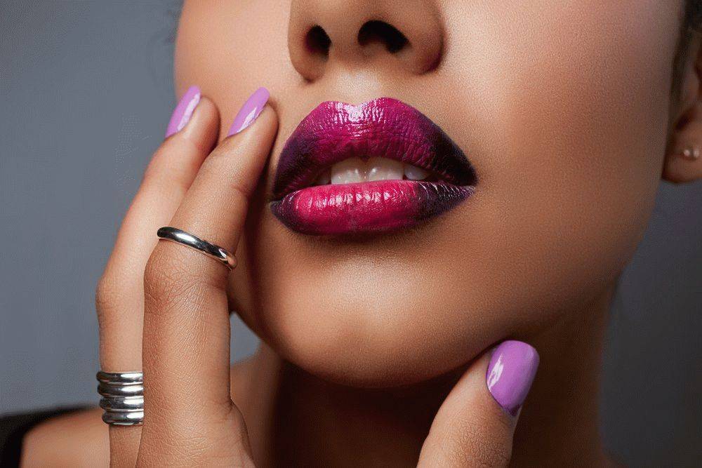 Губы будут казаться объемнее, если создать на них плавный переход цветов — градиент (омбре). Эта техника используется не только в макияже, но еще и в дизайне ногтей. И прием довольно прост в реализации — справится даже новичок.