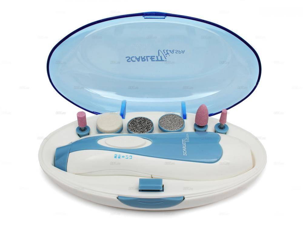 Маникюрный прибор Scarlett SC-MS95007 занимает достойное место нашего рейтинга, так как имеет продуманную комплектацию, облегчающую процедуру обработки ногтей при минимальном комплекте насадок. В набор входят две насадки для обрабатывания ногтей – конической и цилиндрической формы, диски для шлифования кожи, выравнивания поверхности ногтей и полировки. Три насадки изготовлены их натурального камня, поэтому их можно использовать для обработки искусственных ногтей.