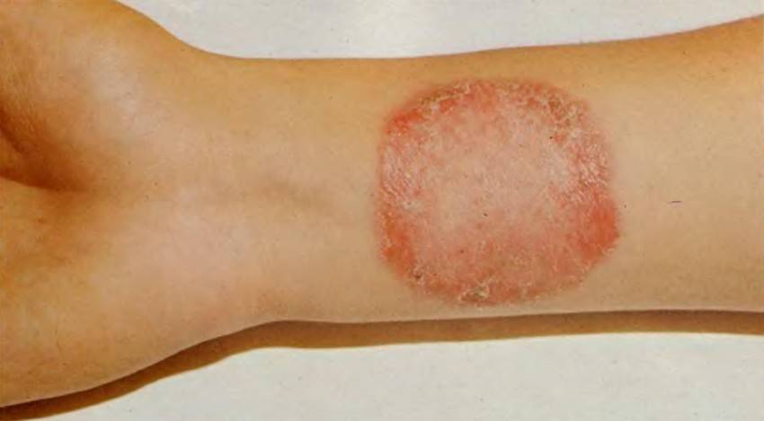 При заражении грибами на коже и в складках появляются воспалительные очаги кольцевидной формы, с четкими границами и приподнятым валиком по краям. На поверхности могут быть мелкие чешуйки, пузырьки. При поражении крупных складок может быть мокнущая и мацерированная поверхность. Часто наблюдается в паховых областях, мошонке, подмышках, под грудью.