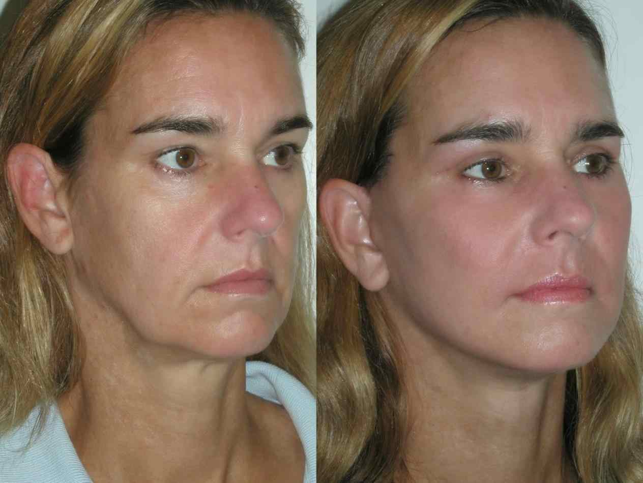 - Филеры. Под кожу вводят специальные нити, которые, как жёсткий каркас удерживают кожу, препятствую обвисанию. Эффект такой процедуры держится около 5 лет.