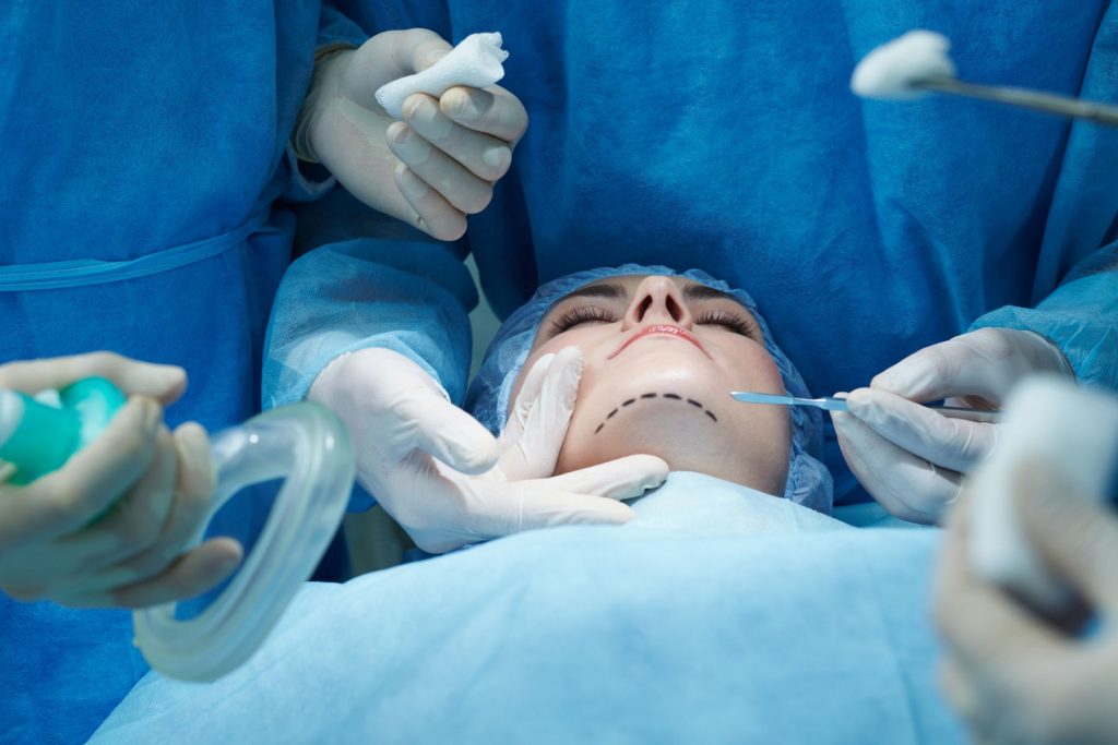 Коррекция подбородка может быть выполнена при помощи остеотомии. В этом случае срезается фрагмент кости и перемещается кпереди – если нужно увеличить подбородок или репозиционируется снизу, когда необходимо уменьшение. Когда выполняется операция с костью пациента, фрагменты фиксируются титановыми пластинами, а шов все равно остается незаметным, потому что расположен под челюстью.