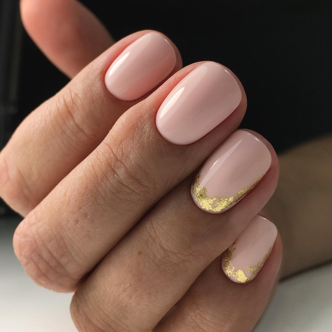 Этому тренду уже не один год, но он по-прежнему актуален. Нежно-розовый маникюр с едва заметными кварцевыми прожилками выглядит очень нежно и может стать настоящим украшением образа. С одной стороны, он не бросается в глаза. С другой — смотрится гораздо интереснее, чем однотонное покрытие полупрозрачным розовым лаком.