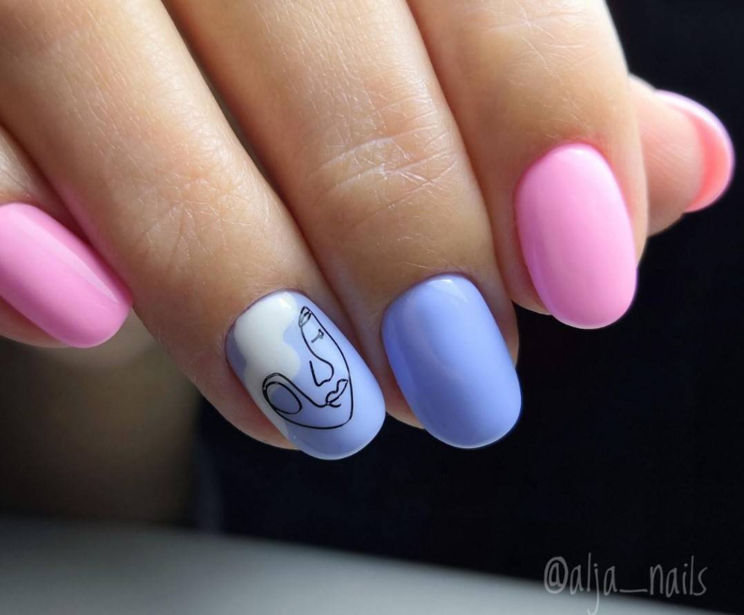 Новое веяние моды — минимализм. Чаще всего маникюр выполняется в светлых оттенках, но также может быть выполнен в ярких плотных цветах. Минимализм допускает присутствие украшений, но их должно быть минимальное количество. Для дизайна можно использовать фольгу или прорисовку.