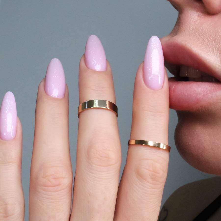 Стоит избегать слишком светлых и перламутровых оттенков, так как они будут визуально расширять ногтевую пластину.