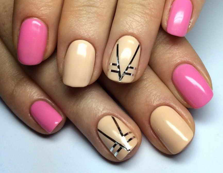 Дизайн с использованием скотч-ленты тоже весьма популярен, главное не перегружать ногтевую пластину элементами. Линии разных направлений наиболее выигрышно смотрятся в следующих цветовых решениях: