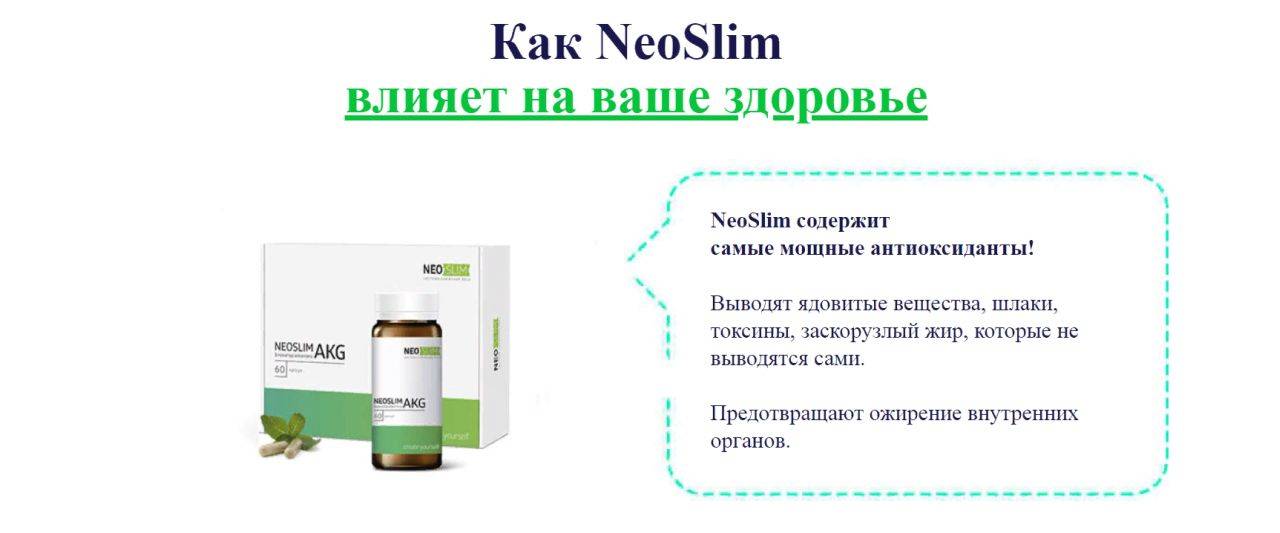 В начале курса похудения препарат запускает процесс активного сжигания внутреннего жира, которым обросли ваши внутренние органы. Уже после недели приёма Neo-Slim улучшит ваше самочувствие. Вам станет легче дышать во время физических нагрузок, исчезнет тяжесть в груди. Параллельно с описанным процессом будет происходить очищение кишечника от шлаков. Это повлечёт за собой улучшение работы всего желудочно-кишечного тракта.
