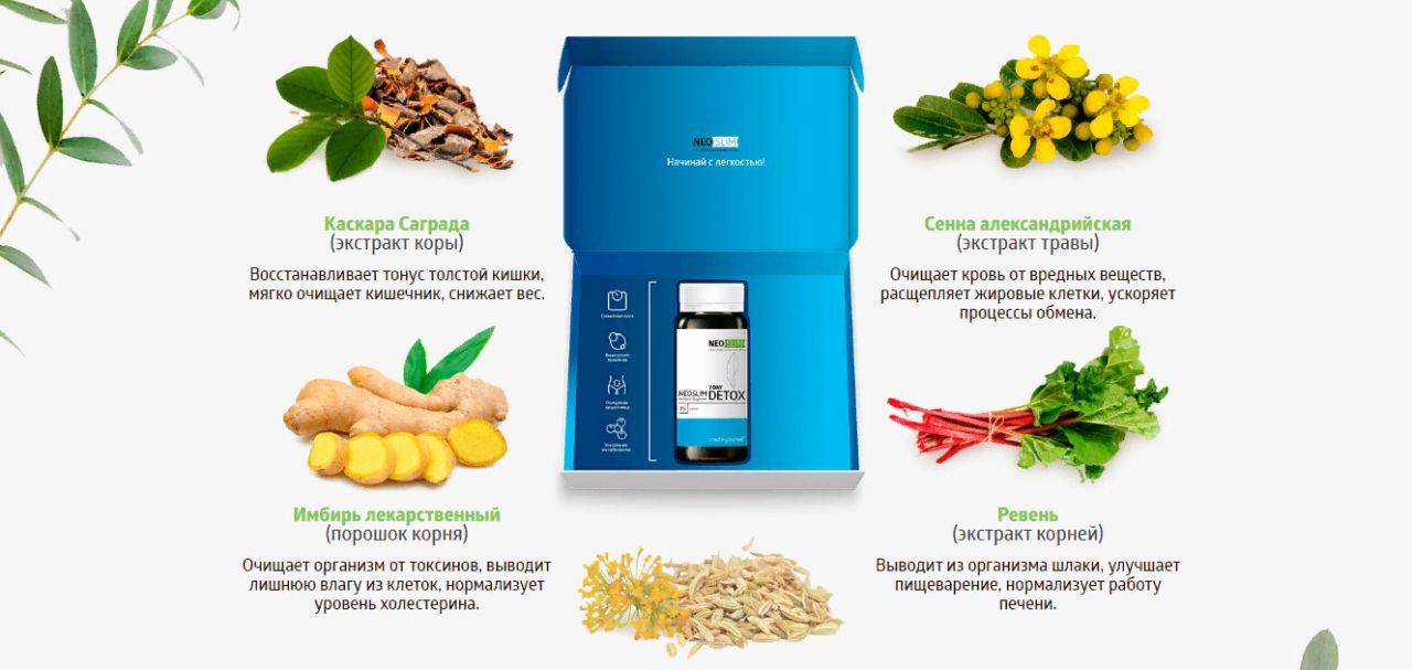 - сенна — растение, которое давно выращивают в качестве лечебного продукта. В продукте Neo-Slim Сенна очищает кровь и весь организм от жира, что ускоряет сброс лишних килограмм;