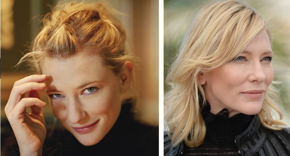 Актриса рассказывает, что в жизни наносит легкий макияж. Бронзатор слегка освежает лицо, тенями Бланшетт подводит линию глаз и слегка подкрашивает реснички черной тушью. Сыворотка заменяет базу макияжа, так он выглядит натуральным. Хайлайтер обеспечивает сияние на важных вечерах и премьерах.