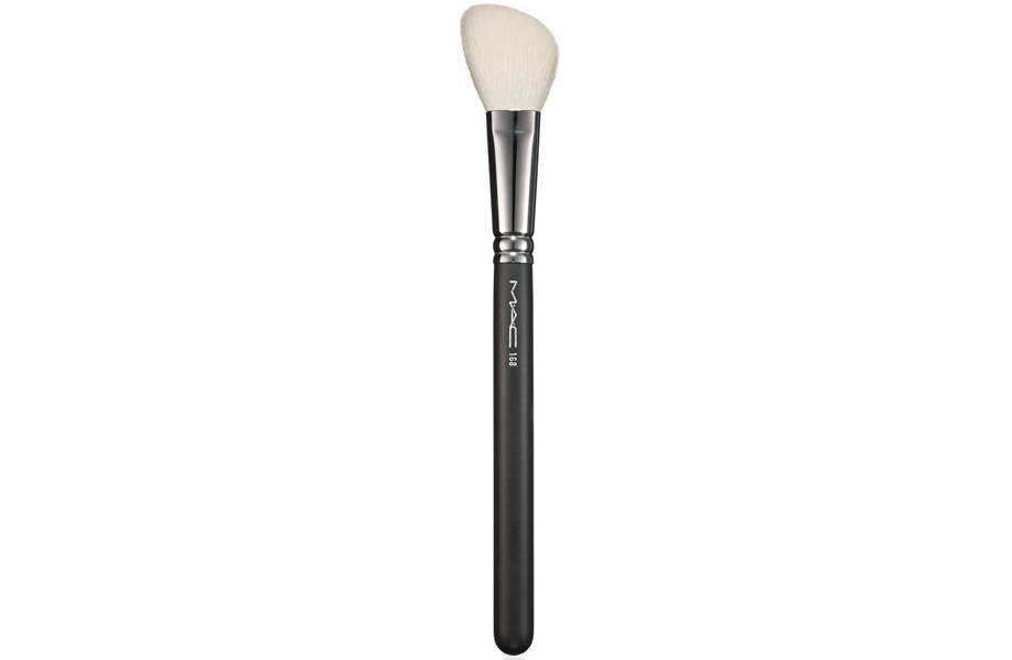 Легкую коррекцию лица никто не отменял независимо от трендов, и именно плоской скошенной средней жесткости кистью из натурального ворса легче всего выполнить аккуратный контуринг: подвести скулы, сделать нос тоньше, уменьшить подборок. Ею же можно провести по векам контурной пудрой, выровняв тон, если вы очень спешите. Такой кистью также хорошо наносить румяна на яблочки щек: за счет скошенной формы пигмент естественно ляжет на скулу. Вам потребуется немного практики, но волшебные свойства скошенной кисти не оставят вас равнодушными.
