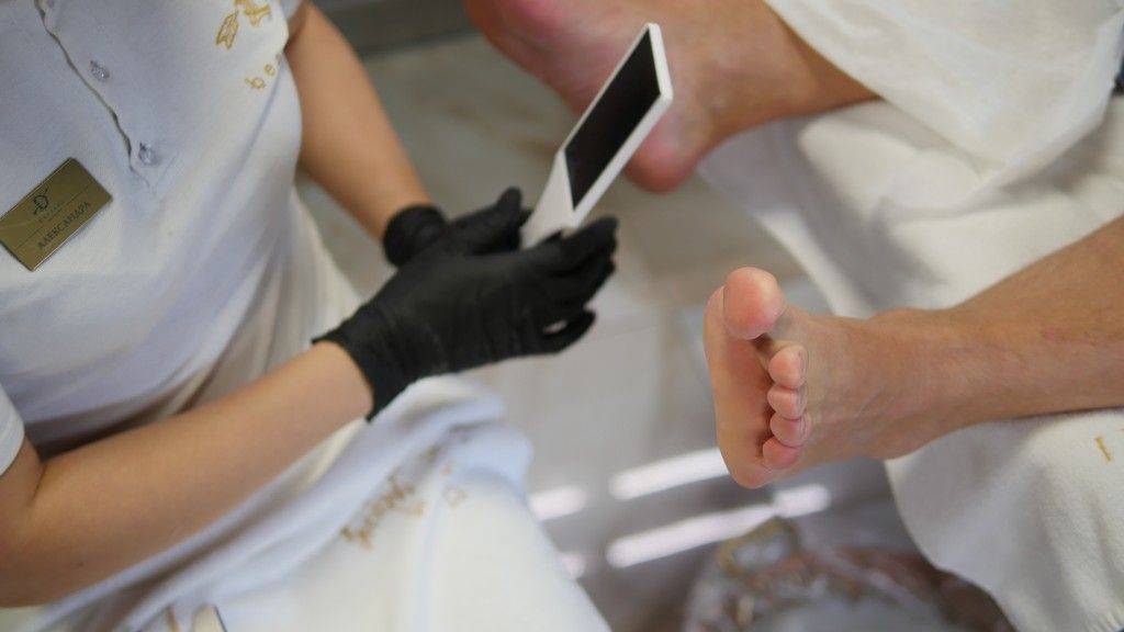 Включает в себя ручные и аппаратные манипуляции. Толстые слои грубой кожи и большие наросты убирают аппаратом перед использованием распаривающей ванночки. Затем аппаратные фрезы используют при обработке ногтей и шлифуют стопы для достижения идеальной гладкости. Вручную наносят химические составы и питательные эмульсии, а также проводят массаж для стимуляции кровообращения.