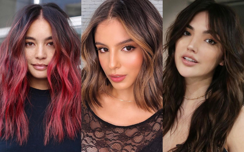 Для модного окрашивания волос в 2023 году на средние волосы для брюнеток стилисты тоже подготовили множество вариаций оттенков, которые будут крайне востребованы и популярны. Темные волосы довольно легко затемнить, можно попробовать оттенки какао и темного шоколада, темный с синеватым блеском.