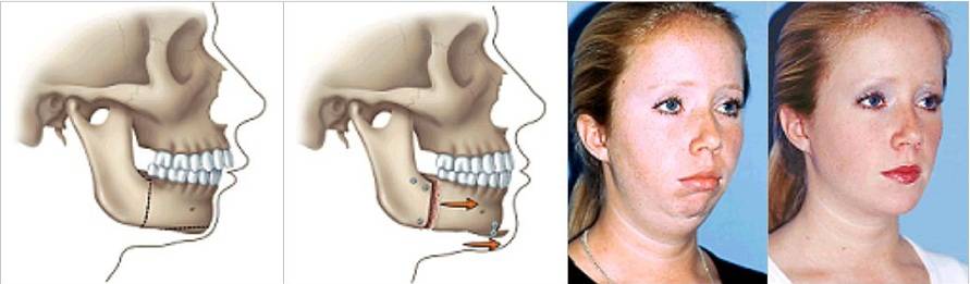 Люди, которые привыкли к расположению своих зубов на челюсти, часто видят только внешние проявления проблемы (второй подбородок и тонкие губы). Следовательно, решают они проблему путем устранения ее внешних проявлений: прибегают к липосакции области подбородка, вводят филлеры в губы. При этом намного более рациональным решением является исправление положения зубов на челюстях. У молодых пациентов брекет-система может скорректировать рост челюстей. У взрослых выраженные формы дистальной окклюзии устраняются путем проведения ортогнатической операции.