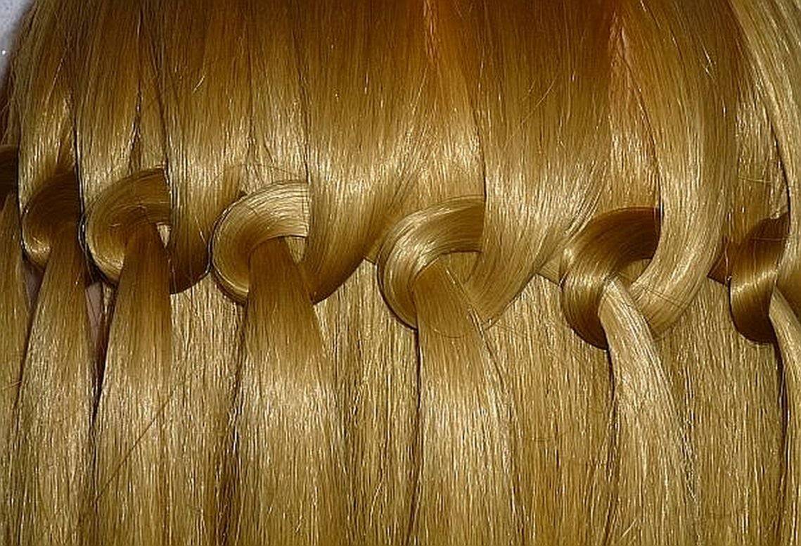 - И так плетем, пока не дойдем до второго уха. Чем мельче пряди, тем больше волн водопада.