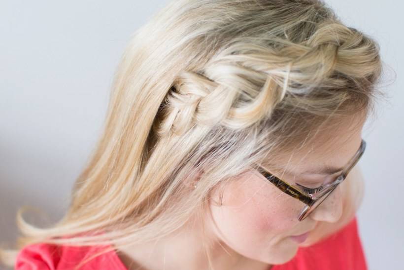 - Концом расчески или свободным пальцем подхватывают прядь сбоку головы и вплетают в обратную косу.
