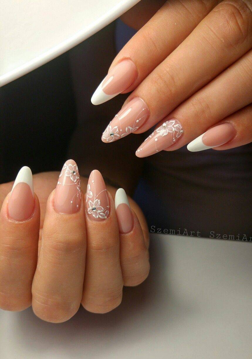 Если форма ногтей далека от идеала и требует срочной коррекции, можно воспользоваться процедурой наращивания, однако длина не должна превышать «двоечки». Аккуратные ногти, украшенные нежным дизайном – идеальный вариант для невесты 2018 года!