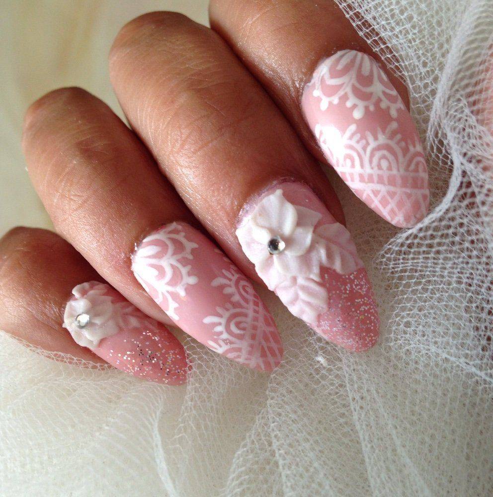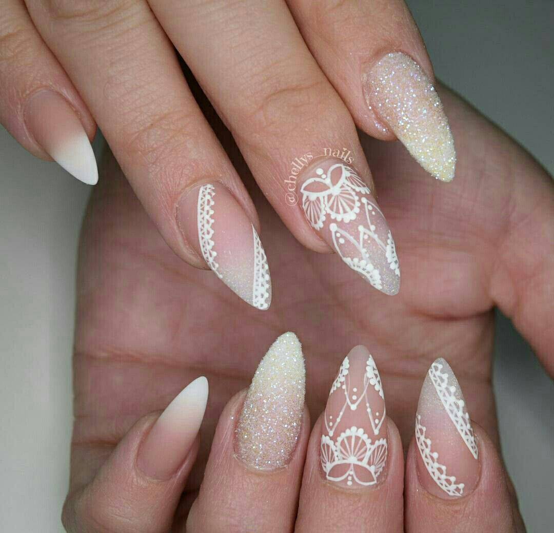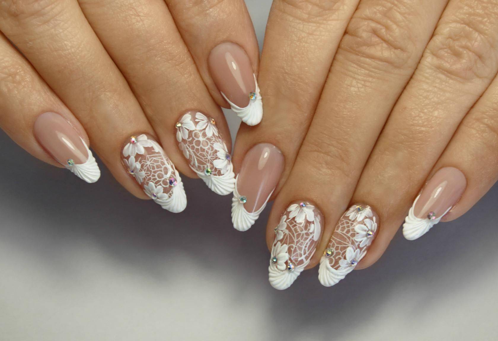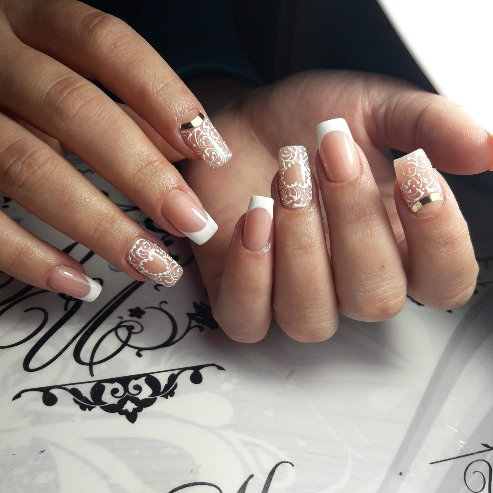 Кружевной маникюр великолепно сочетается с платьем и фатой невесты. Существует несколько способов создания кружевного декора: