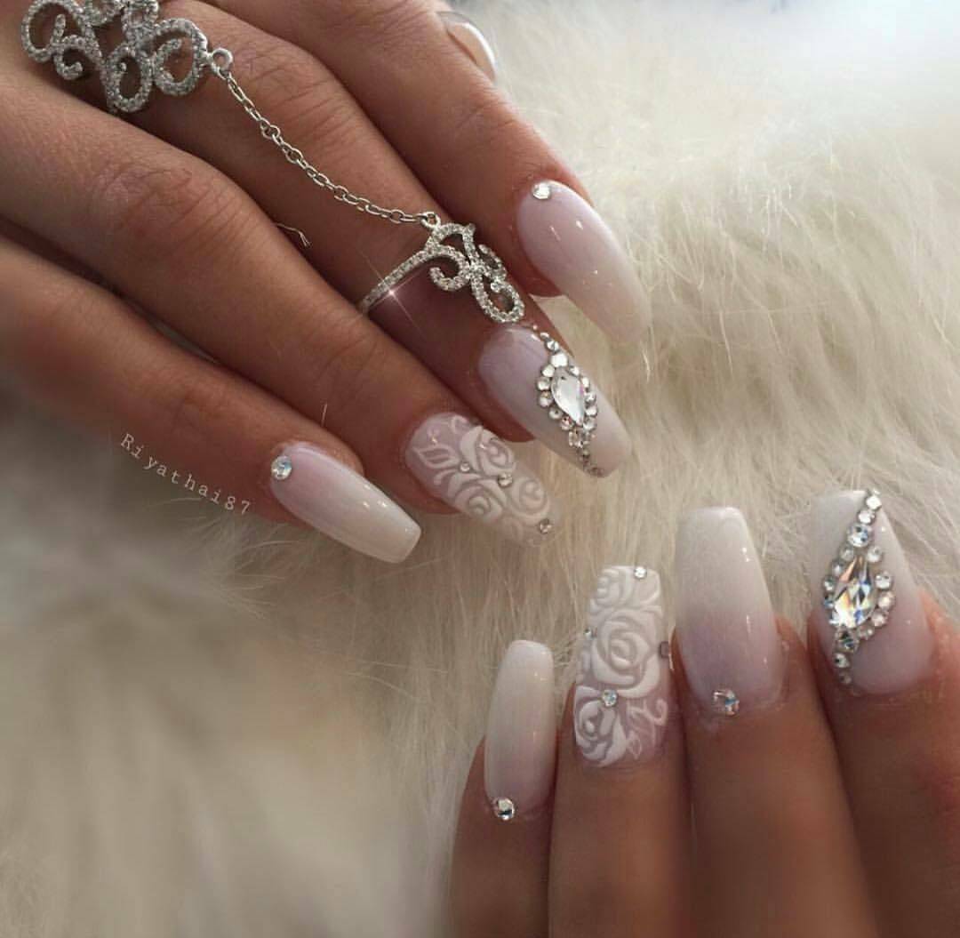 - со свадебным маникюром можно использовать акриловую лепку и различные украшения, которые будут изящно смотреться на ноготках невесты.