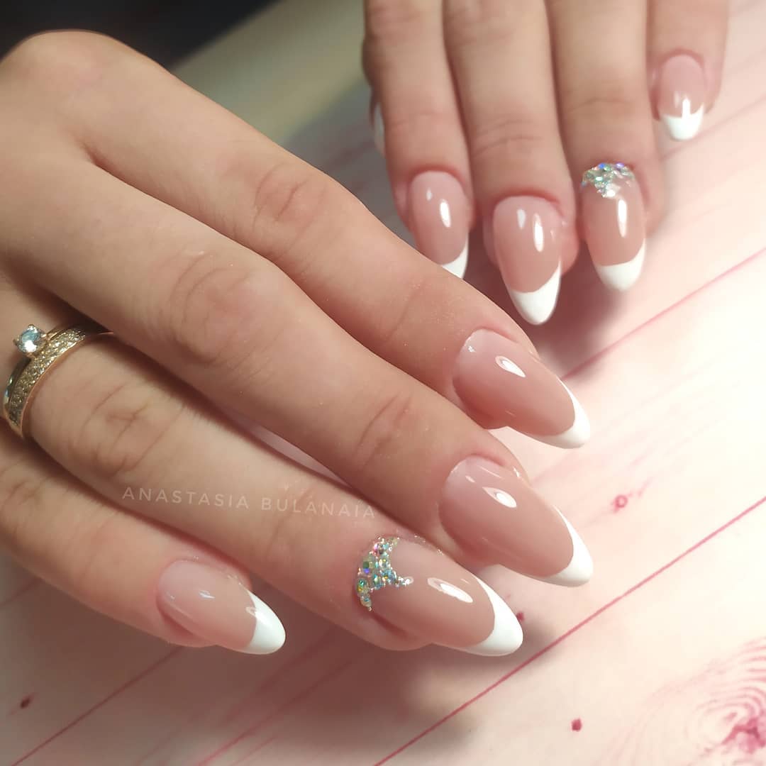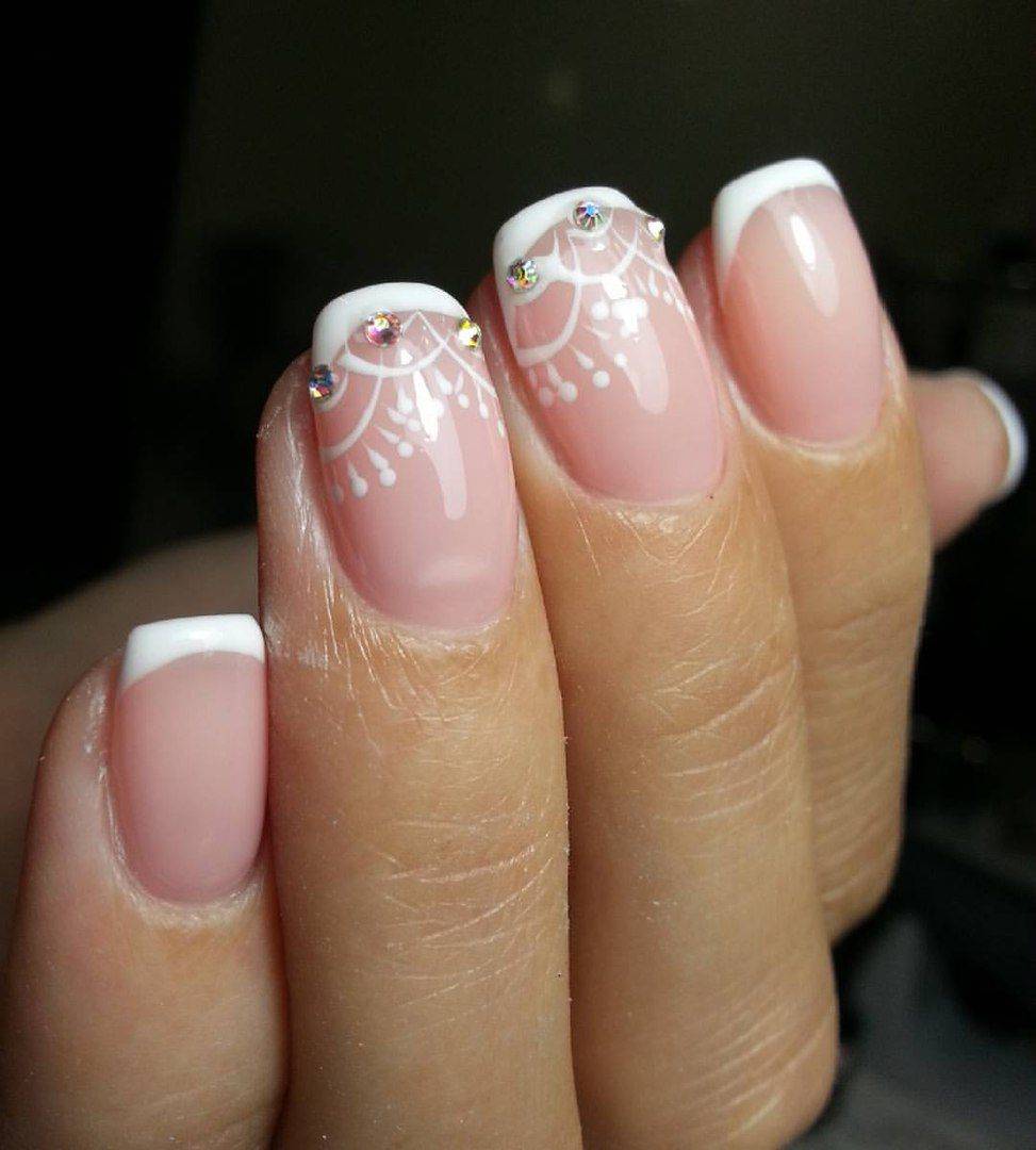 Как известно, лучшие друзья девушек – это бриллианты, а если речь идет о свадебном торжестве, то лучшими помощницами невест станут стразы. В свадебном френче стразы выглядят выигрышно и красиво, они способны «зажечь» даже самый лаконичный нейл-арт.