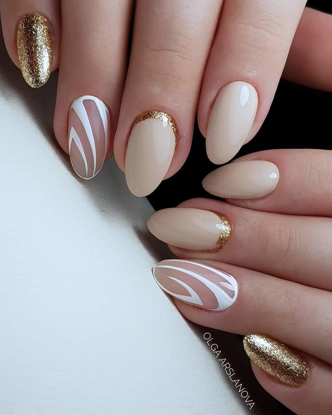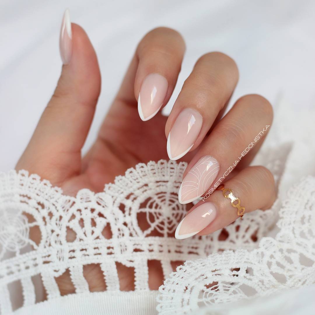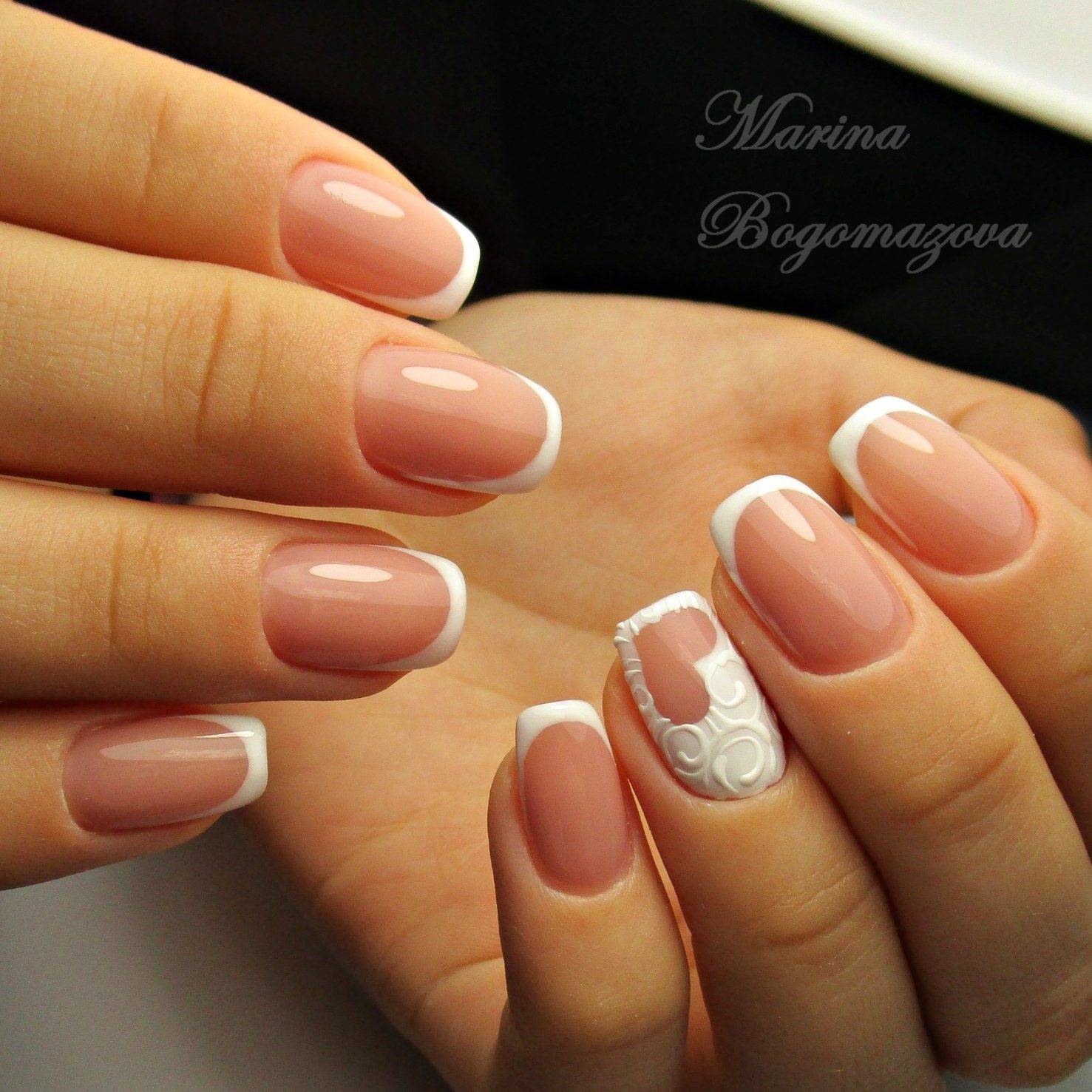 Если свадьба классическая, проводимая по традиционным канонам, предпочтение следует отдать светлым тонам – телесным, бежевым, белым, кремовым. Весьма привлекательно смотрится дополнительное украшение, например интересный узор, выполненный только на одном ногте.