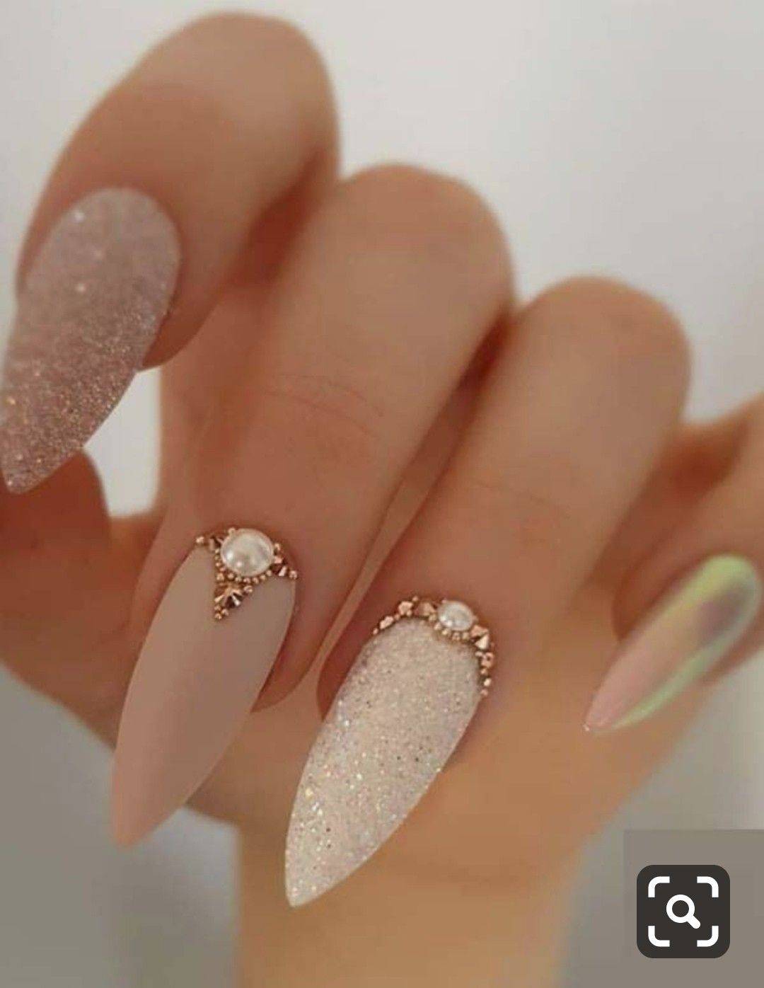 Этот маникюр подойдет, пожалуй, любой невесте. Особенно выигрышно он будет смотреться, если у вас платье цвета слоновая кость или с тем же жемчужным отливом.