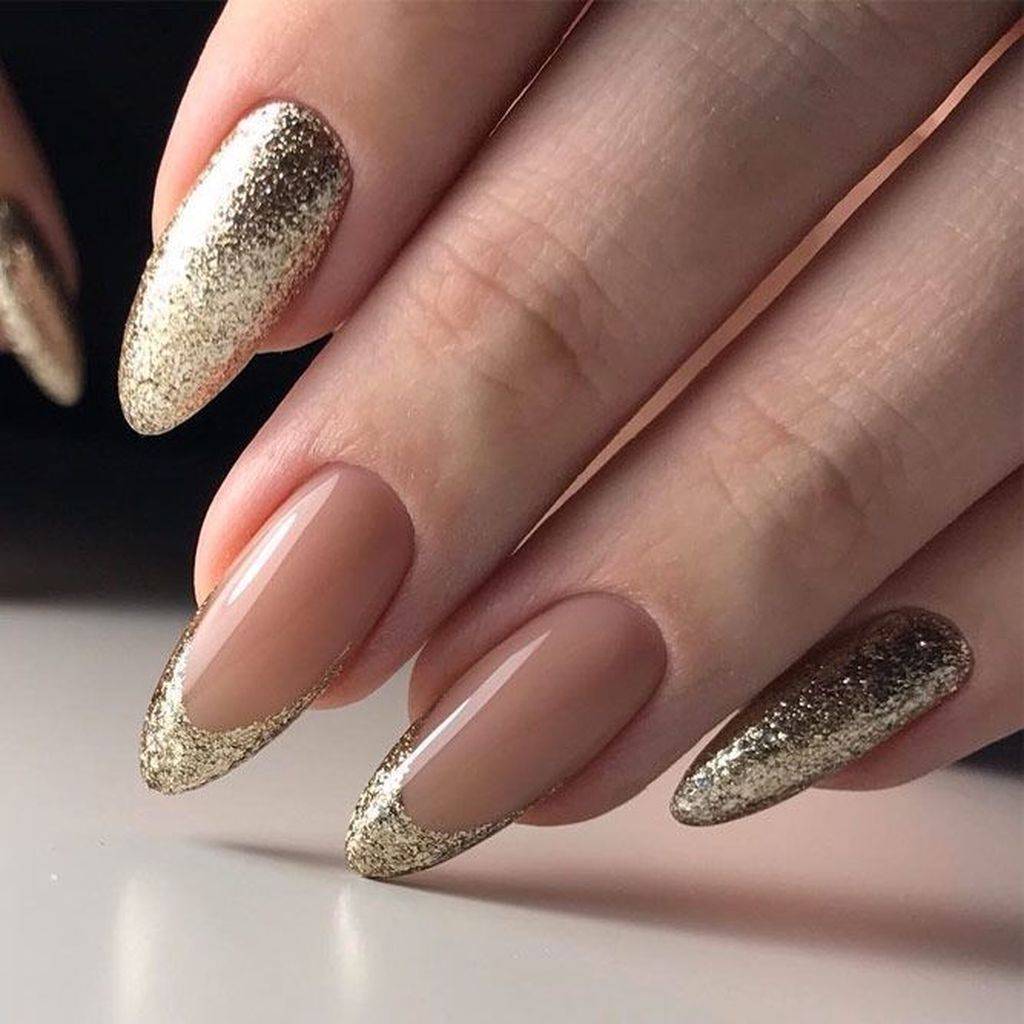 2. После того как прозрачная основа высохла, украшаем свободно отросший край ногтя блестками.