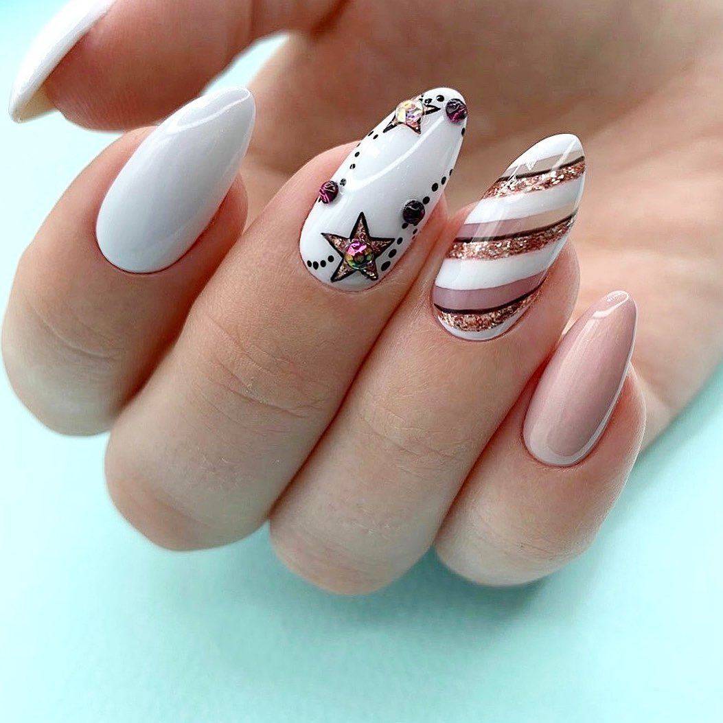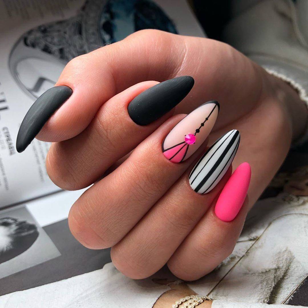 вариантов и прекрасно сочетается с любой формой и длиной ногтей. Декором для трендового маникюра могут служить