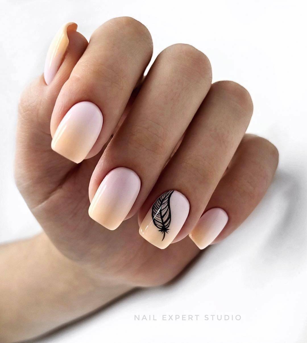 Модный дизайн маникюра в 2021-2022 – нюдовое покрытие и оригинальное оформление.