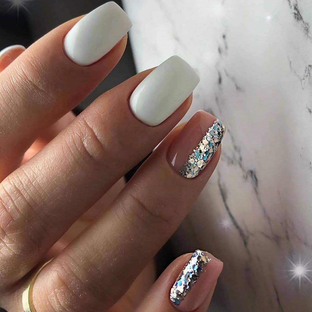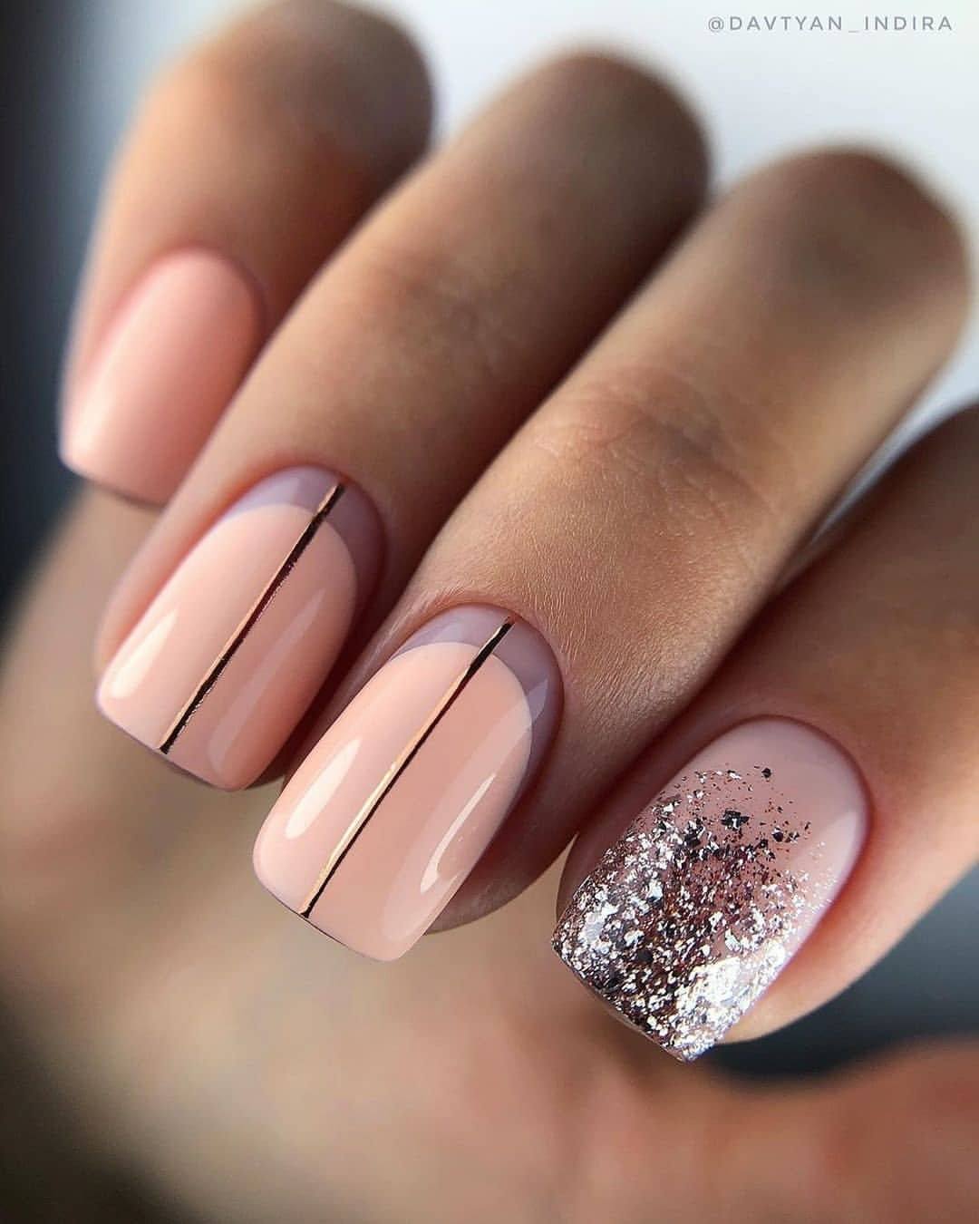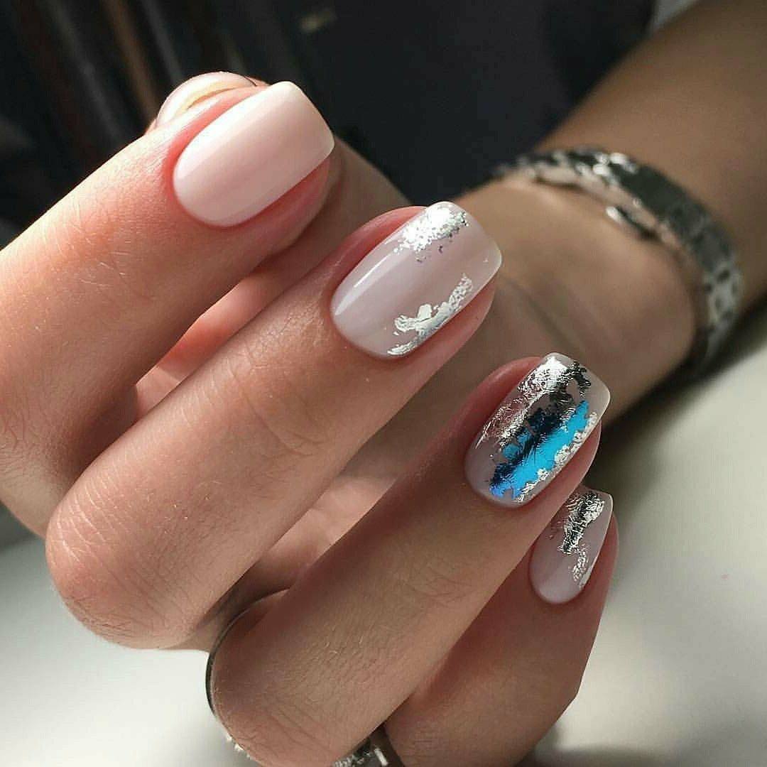 Правильное сочетание нюдовых оттенков и серебра. Популярнейшая идея маникюра.