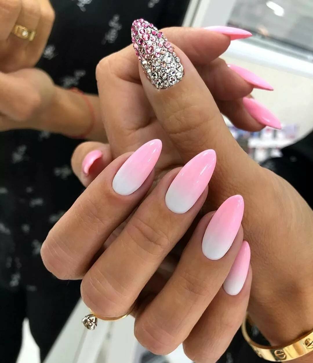 Нюдовый градиент в матовом топе выглядит очень эффектно. Рекомендую всем любительницам острых ноготков.