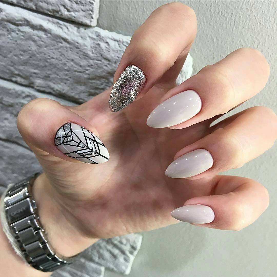Еще один простой способ подчеркнуть свой безупречный вкус — графические узоры. Строгость линий, четкость силуэтов, лаконичность и аскетичность форм — залог успеха в таком декорировании. Более подробно принципы подобного неил-арта мы описывали в статье Геометрия на ногтях. Актуальные черно-белые комбинации, френч, а также стильные асимметрические штрихи — то, что нужно смелой и уверенной в собственном превосходстве личности.