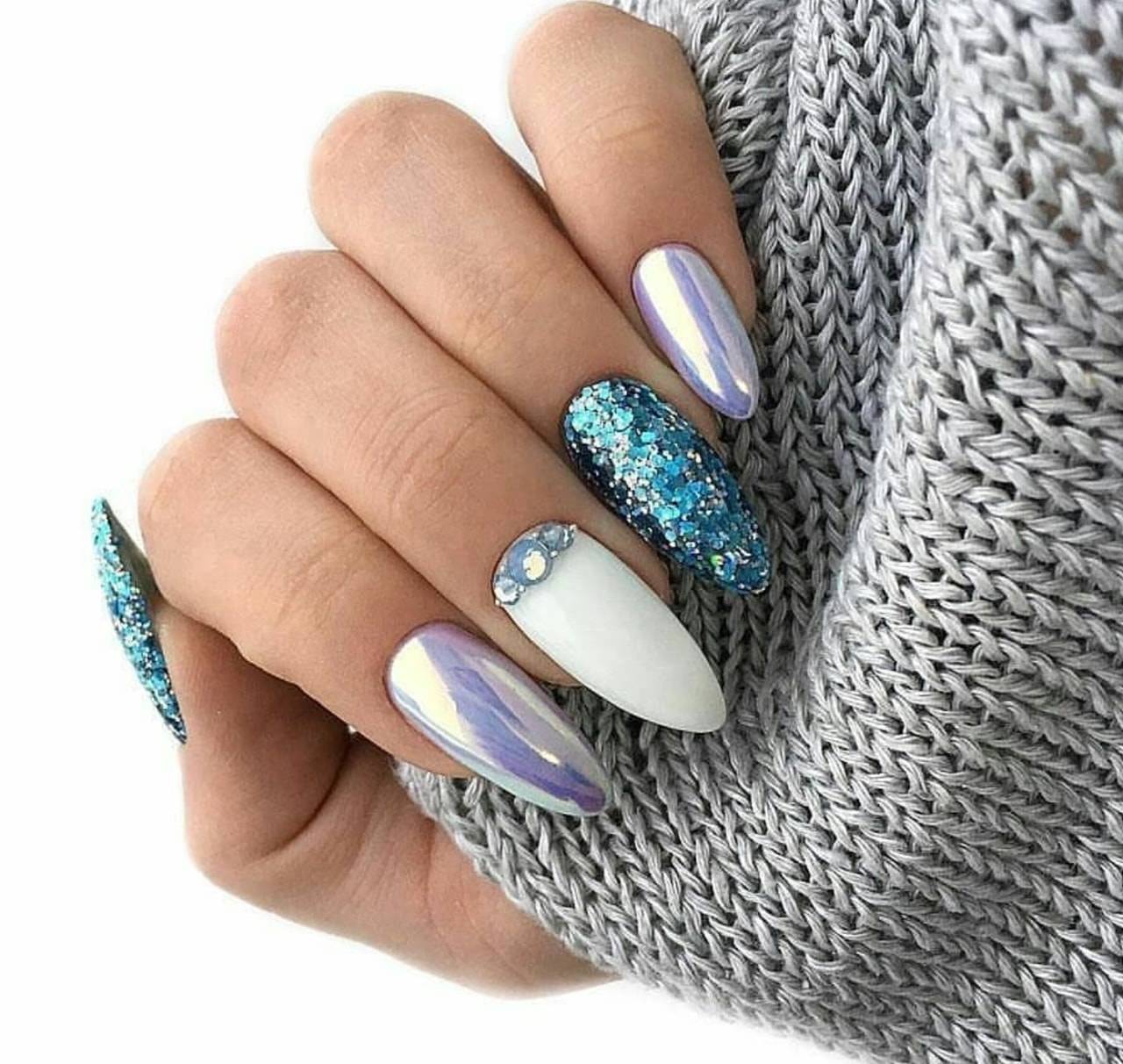Рекомендую присмотреться и к блестящему переливающемуся маникюру. Лучшие мастера маникюра уже давно используют это в практике.