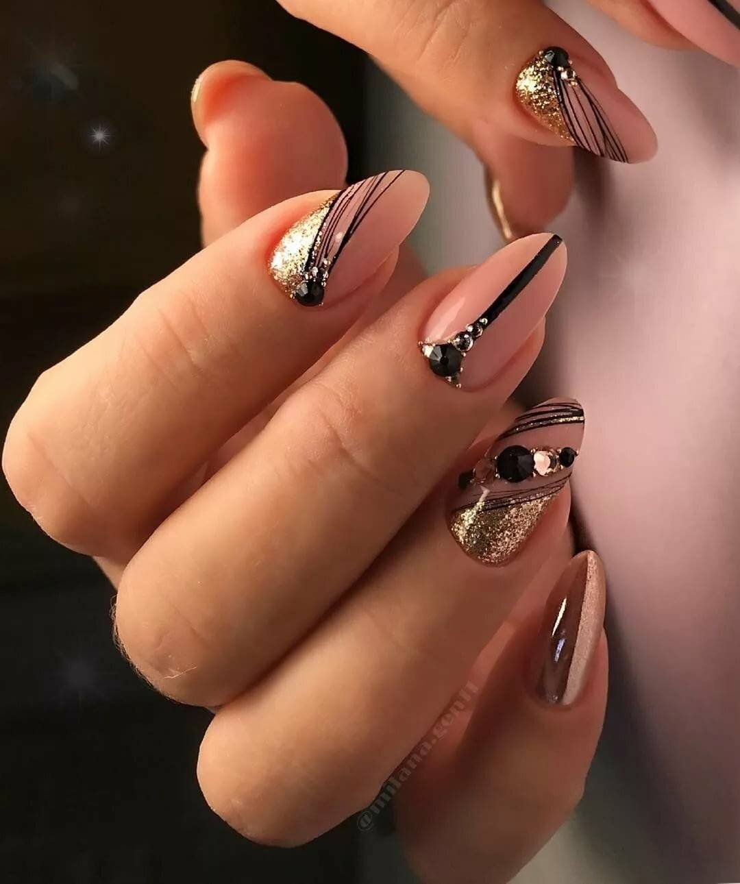 Оформление стразами и блестящим песком добавит шарма и лоска. Стоит взять на вооружение эту модную тенденцию.