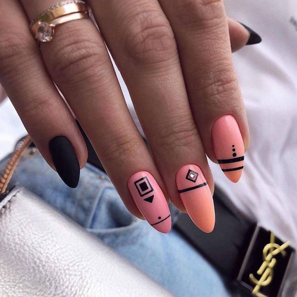 Этнические мотивы — еще один яркий способ подчеркнуть свою индивидуальность и самобытность. Они броские и запоминающиеся, стильные и легковыполнимые. Как правило, для того, чтобы сделать рисунок в этническом стиле вам нужна лишь вдохновляющая картинка из пинтерест, неуемное желание творить, а также маневренная тонкая кисть с парой-тройкой цветных лаков. Макая инструмент в шеллак, выводите линии и круги, причудливо соединяя их между собою. Выбирайте контрастные, черные и белые сочетания, тандемы салатового и розового, электрического синего и желтого. Лето — лучшее время для реализации такого типа неил-арта.