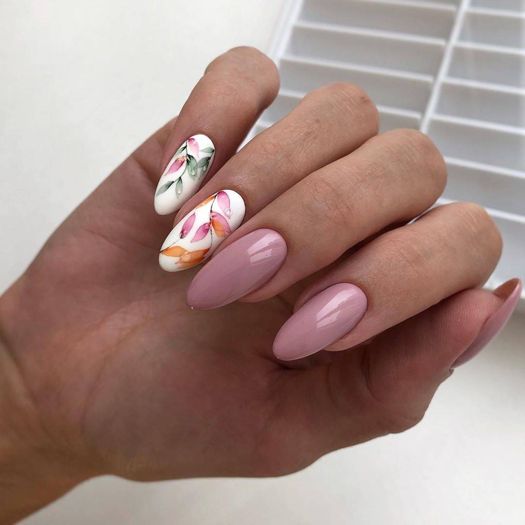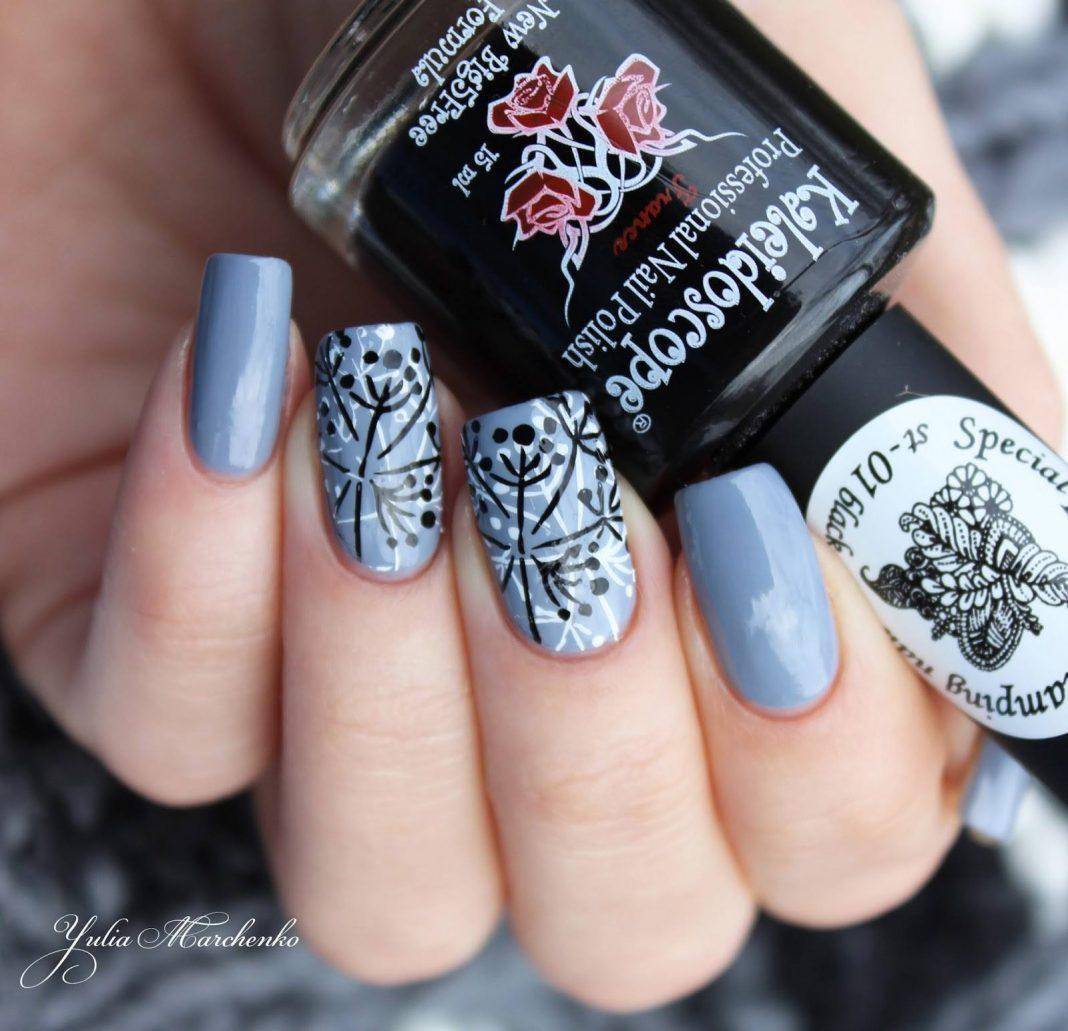 - дизайн стемпингом – выбирайте небольшие узоры с флористикой и размещайте их на матовом светлом фоне