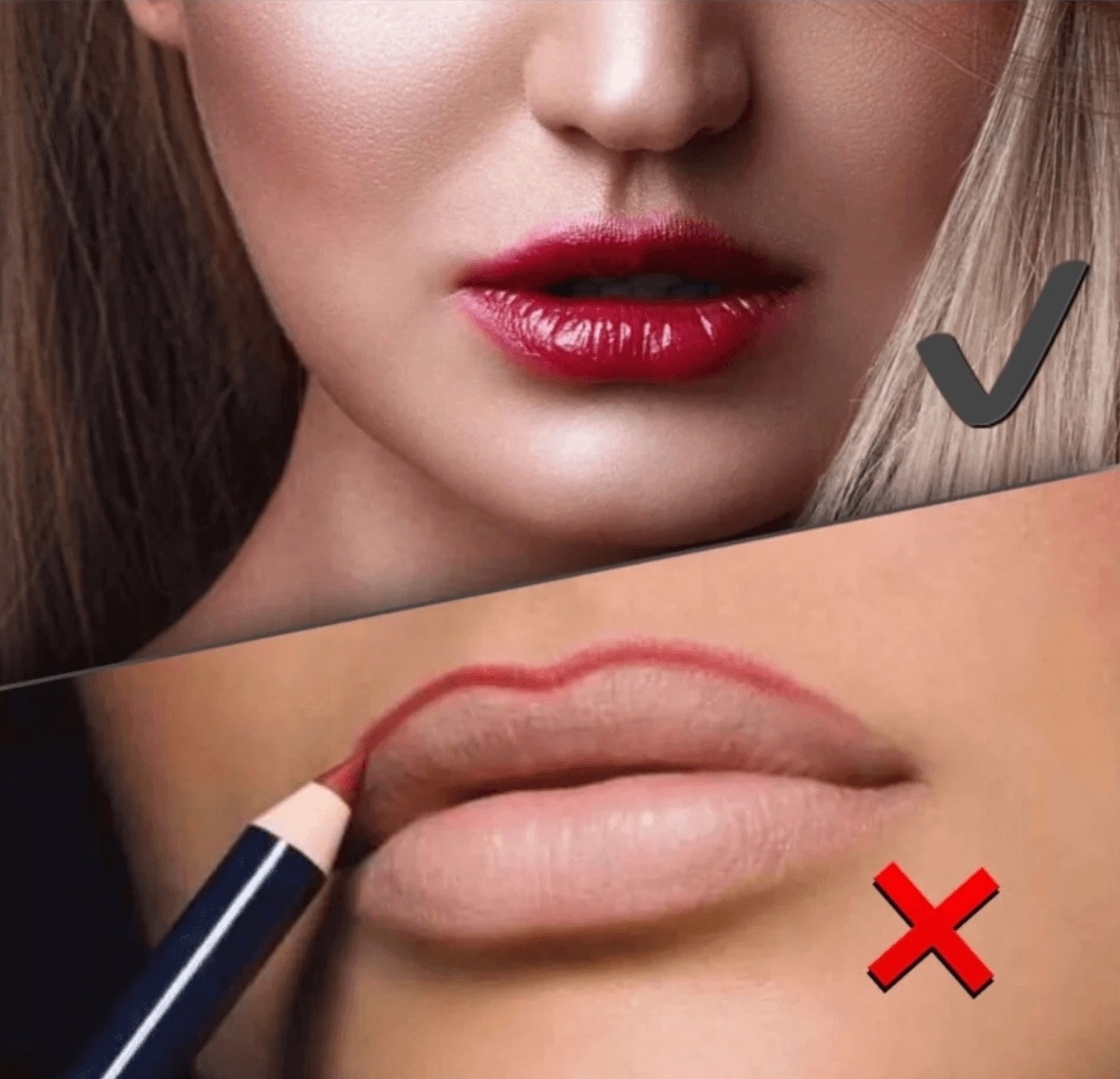 Чтобы выделить контуры губ, воспользуйтесь карандашом. Благодаря этому вы сможете избежать выхода за контуры.