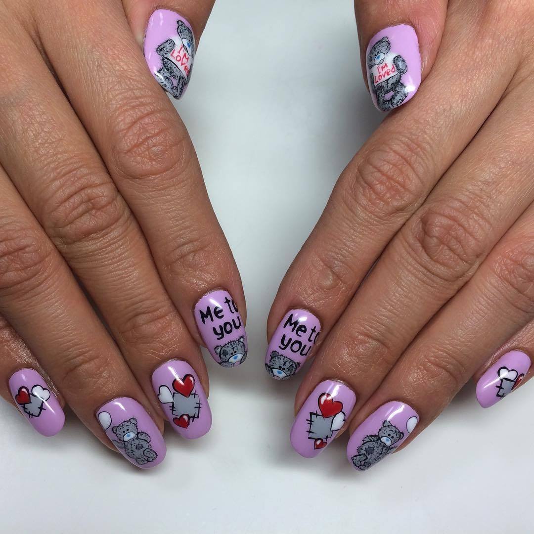 Маникюр с сердечками и надписями