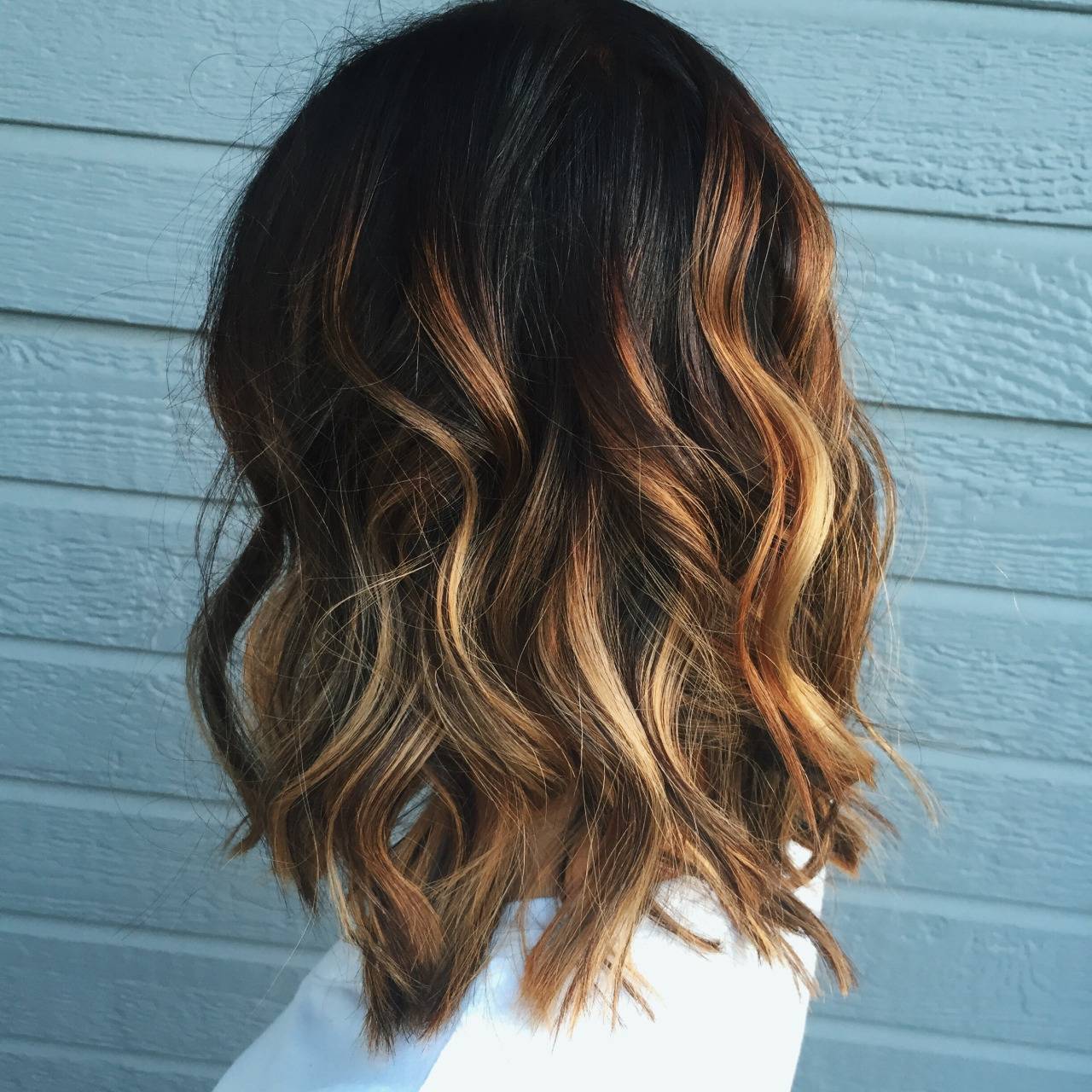 Для темных прядей можно сделать традиционный вариант омбре, при котором оттенок плавно перетекает от темных корней к более светлым кончикам